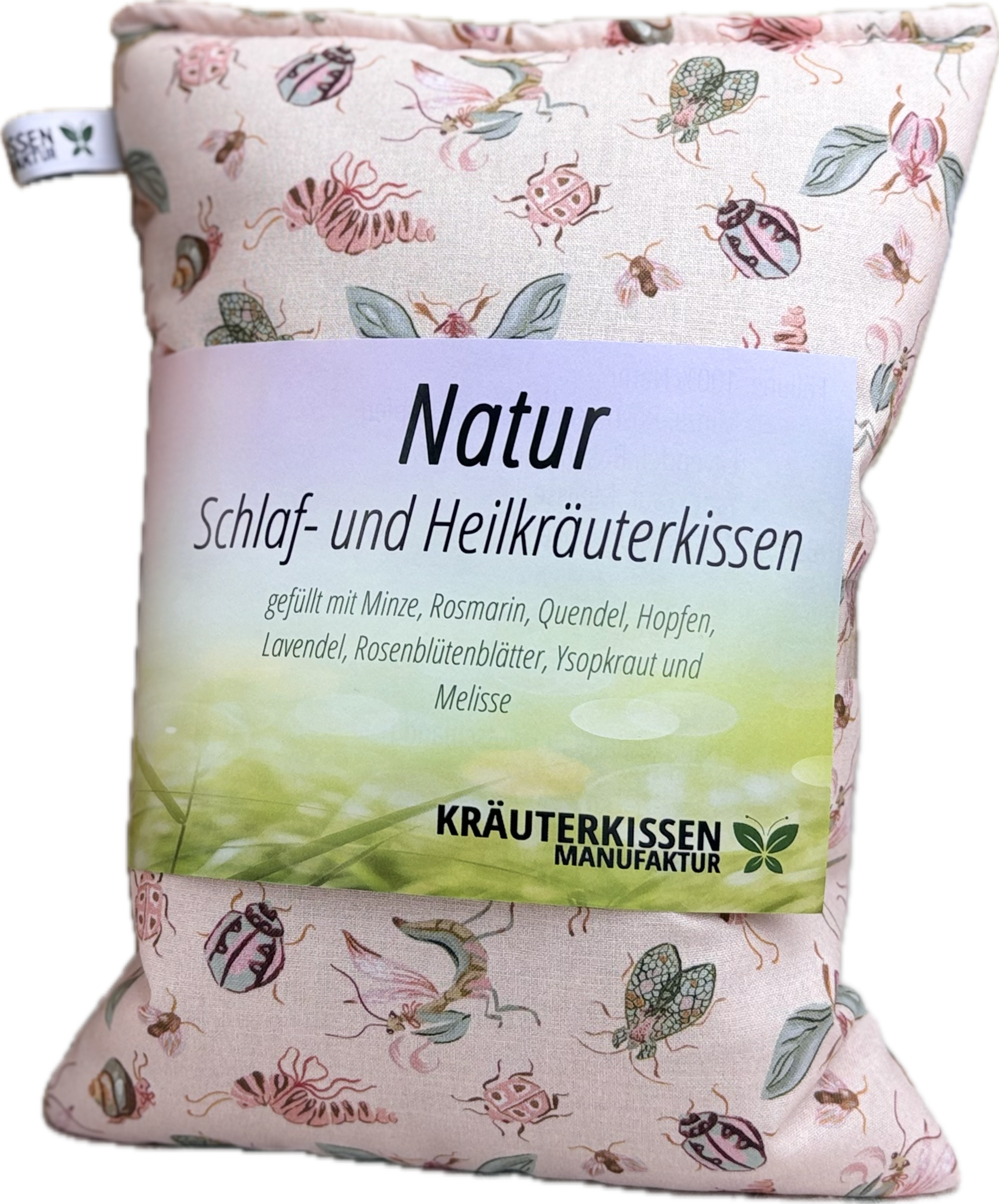 Kräuter sind ein alt bewährtes Naturheilmittel. Unsere Mischung aus Minze, Rosmarin, Quendel, Hopfen, Ysopkraut, Lavendel, Rosenblütenblättern und Melisse, wirkt beruhigend und krampflösend bei Schlaflosigkeit und innerer Unruhe. Befreit die Atemwege bei Schnupfen und Husten.Vor Gebrauch das Kissen kurz schütteln, dann auf die Brust oder das Kopfkissen legen. Durch die Körperwärme werden die in den Kräutern enthaltenen Wirkstoffe aktiviert, und können so inhaliert werden. Ohne Zusatz von Duftstoffen.